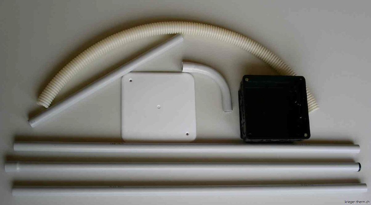 Einen 90° Bogen für den harmonischen Übergang von der horizontalen Bodenebene in die vertikale Wandebene, hin zum Anschlusskasten.